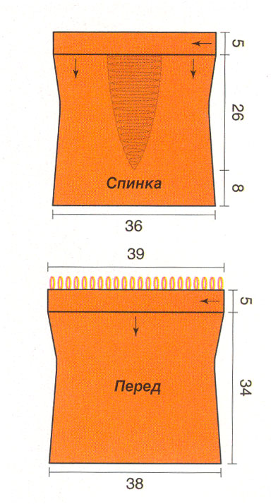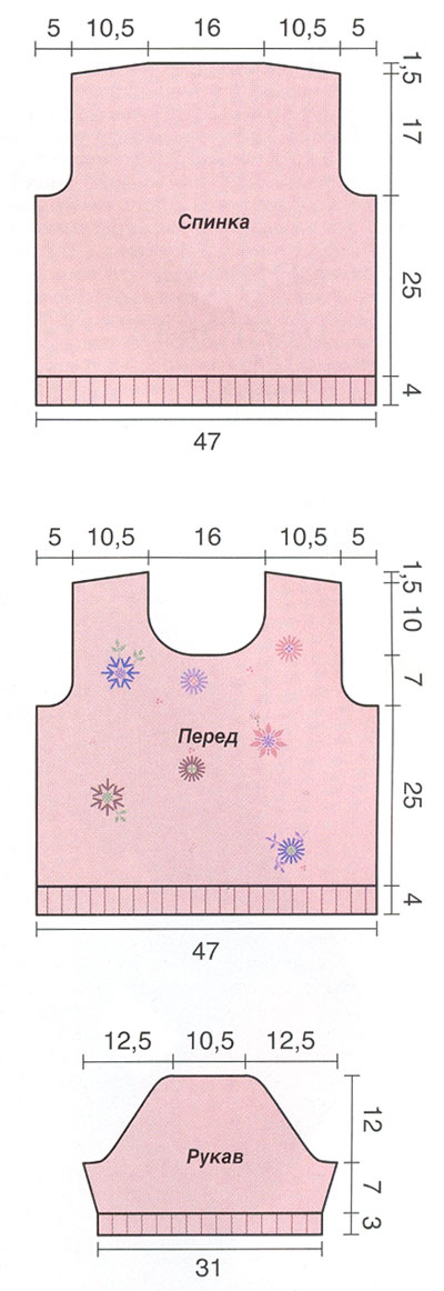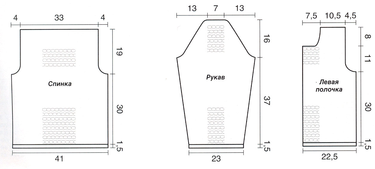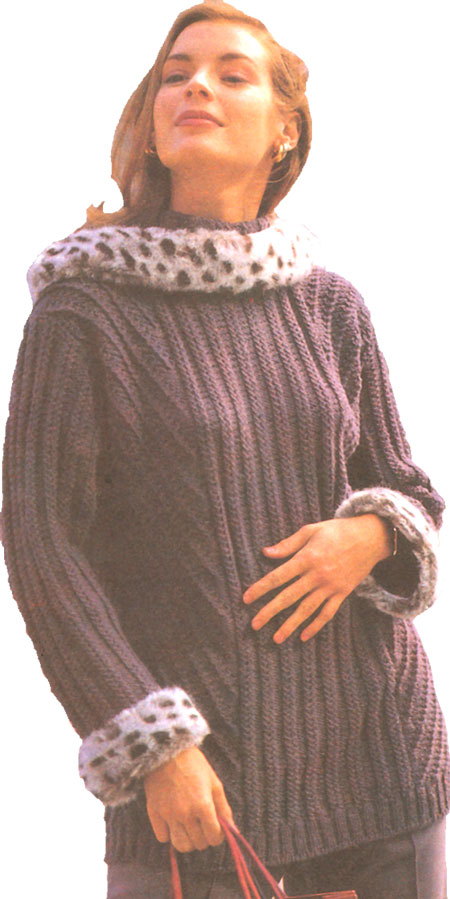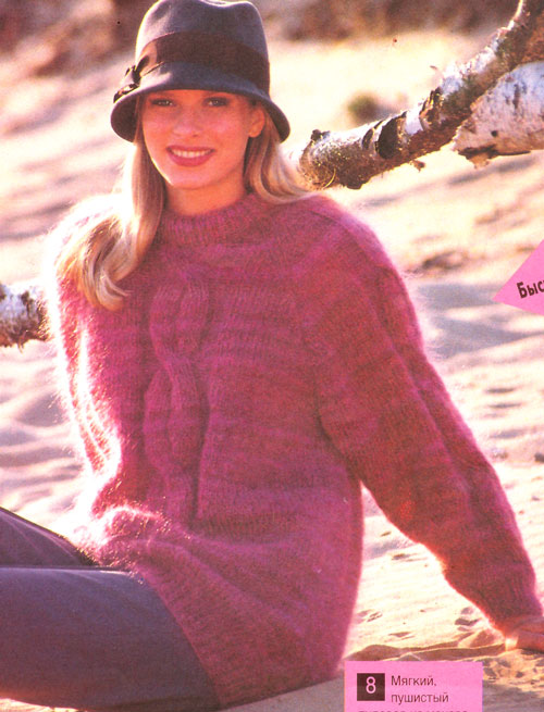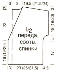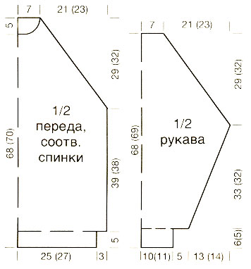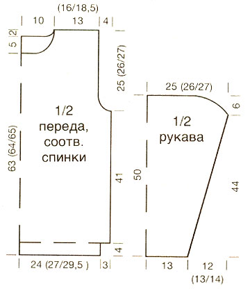 (38/40, 42/44 р; расход пряжи - 600-650 гр, спицы № 4,5-5,5) |