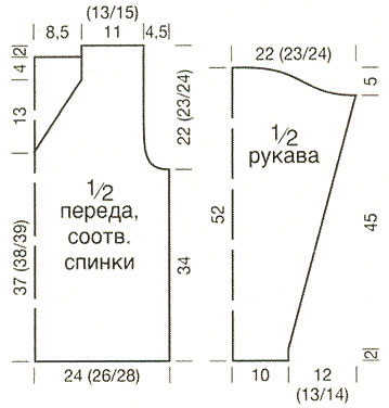(38/40, 44/46, 48/50 р; расход пряжи - 750-850 гр, спицы № 3-4) |