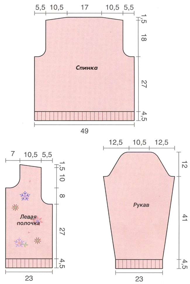 (36/38, 40/42, 44/46 р; расход пряжи - 400-500 гр, спицы №3,5) |