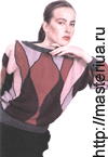 Такие изделия состоят из двух основных деталей (спинка и перед), которые начинают вязать с нижней кромки одного из рукавов. При этом с одной стороны почти все время вяжем ровно, кроме выреза горловины спинки и переда, а другой стороны, в соответствие с расчетами, сначала прибавляем петли до необходимого количества, а затем убавляем. Резинки ли планки по низу переда и спинки, а также манжеты, вяжутся отдельно и присоединяются к готовым деталям или выполняются от полотна. Спинка и перед аккуратно сшиваются по плечевым срезам и боковым швам. |