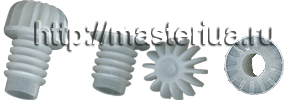 *Мы использовали для этого старую круглую ручку для двери. С ручки сняли декоративную крышку, просверлили два отверстия. Затем, перевернув зауженным концом вверх, двумя шурупами прикрепили на столешнице в намеченной точке. В отверстие ручки "впрессовали" резиновую втулку, в которую, в свою очередь, вставили стержень нитенатяжителя. |